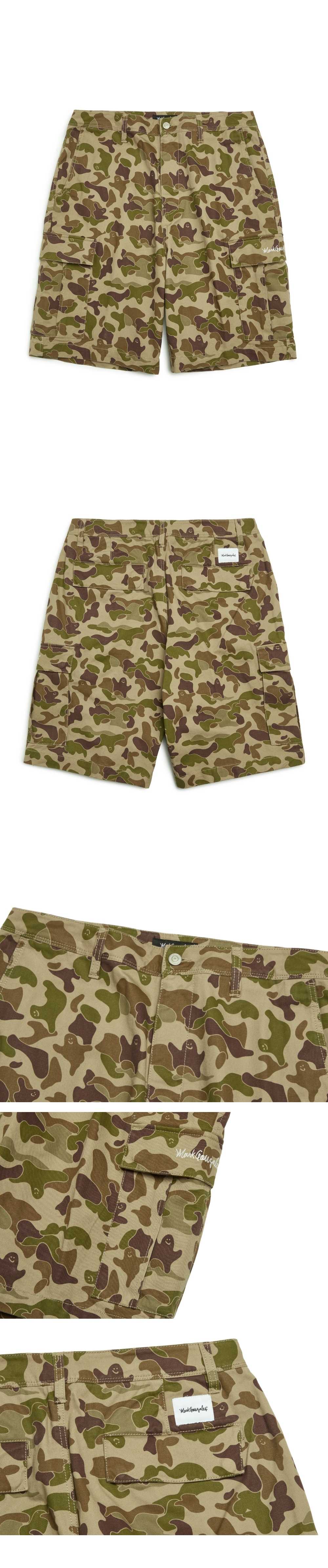- 寬鬆廓形迷彩圖案 100% 棉質工裝短褲