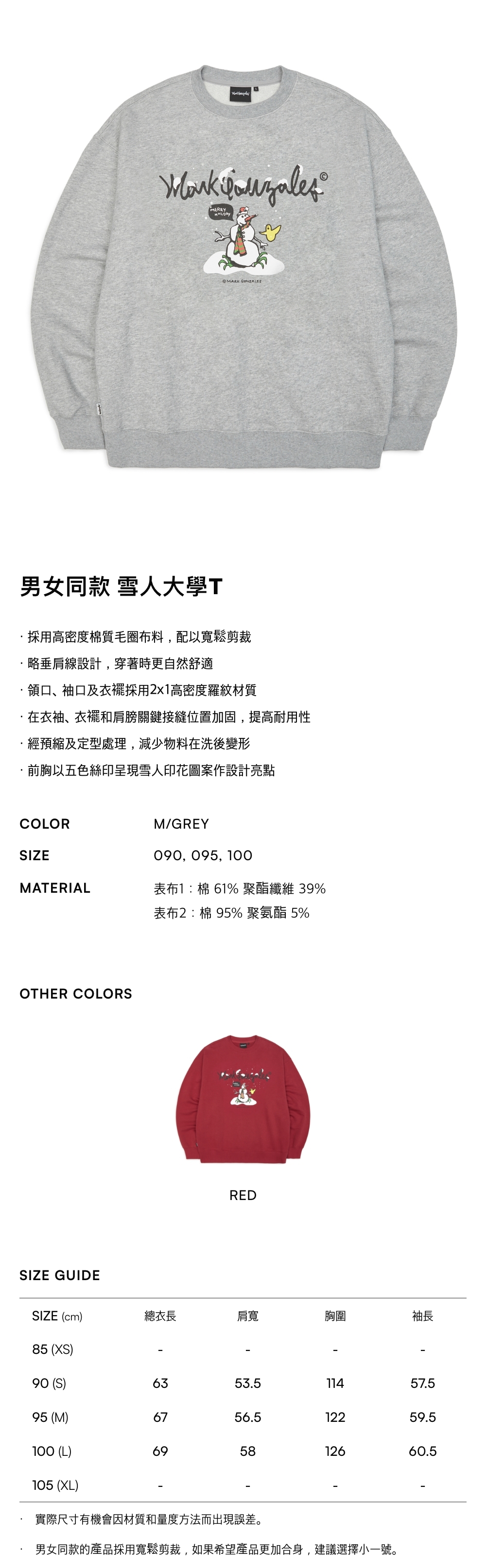 - 前胸以五色絲印呈現雪人印花圖案作設計亮點