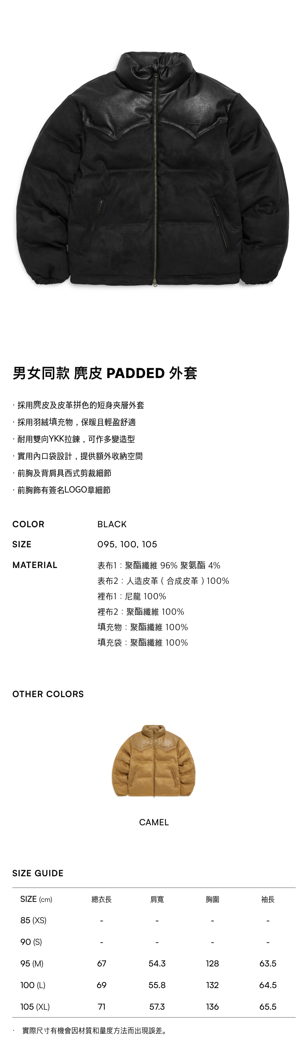 - 採用麂皮及皮革拼色的短身夾層外套