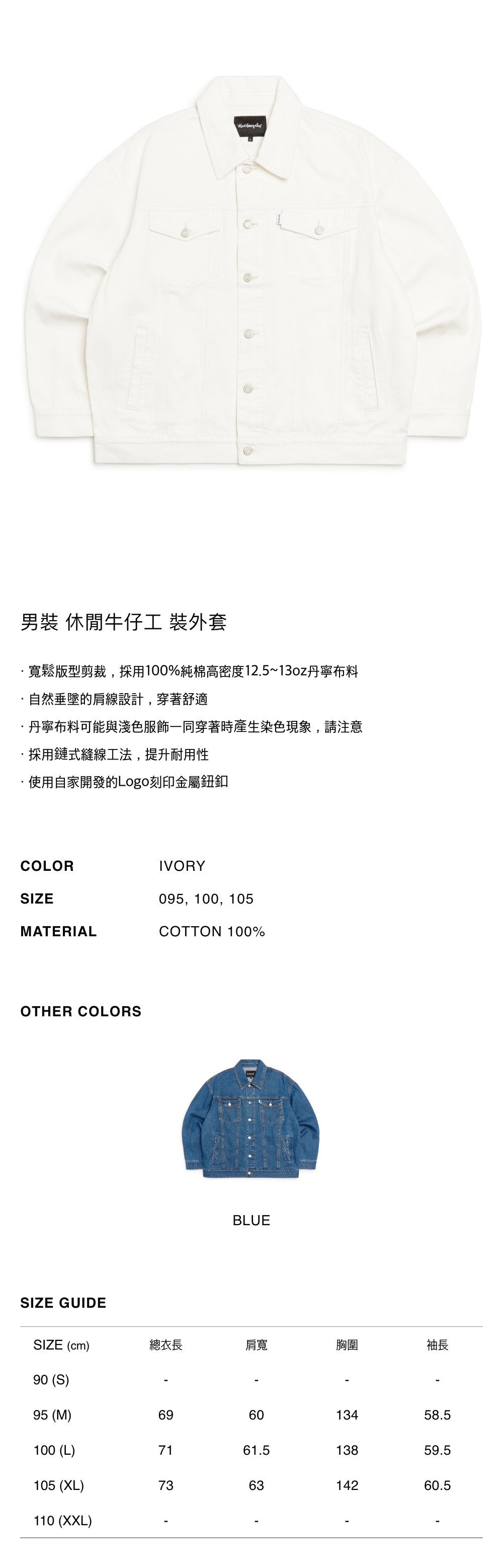 - 寬鬆版型剪裁,採用100%純棉高密度12.5~13oz丹寧布料