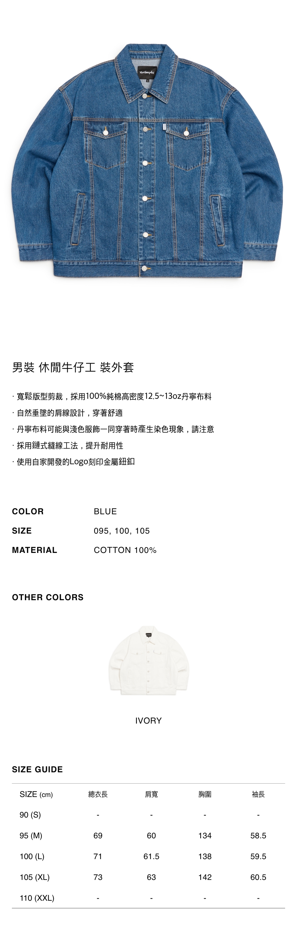 - 寬鬆版型剪裁,採用100%純棉高密度12.5~13oz丹寧布料