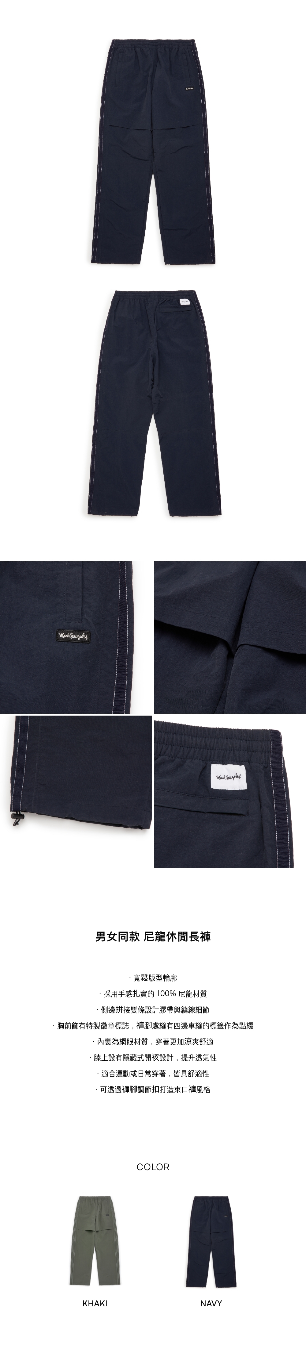 - 胸前飾有特製徽章標誌,褲腳處縫有四邊車縫的標籤作為點綴
