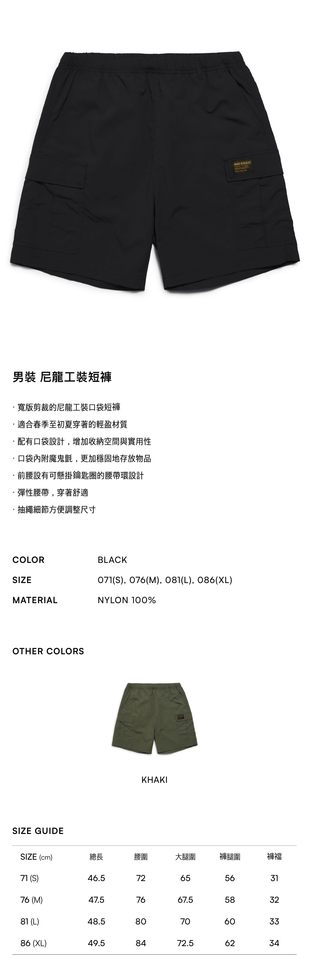 - 寬版剪裁的尼龍工裝口袋短褲